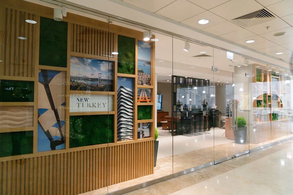 Our last showroom design for Proje Beyaz Ru has opened its’ doors to their guests in Moskow Smolensky Passage.Our architect Leyla Dogrular has given a sense of curiosity by seperating the showcase with oak wood and green walls.The concept of summer, sun ,sand and blue sky images of Turkey has been combined with the unique construction works of the firm. All the furniture and accesories has been custom produced in Turkey.